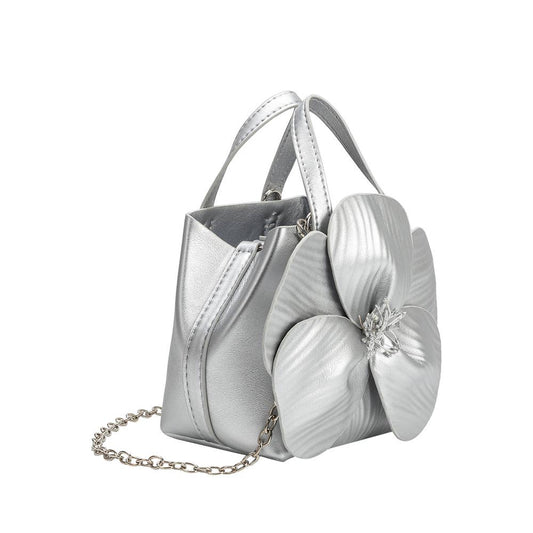 Monroe Silver Flower Vegan Leather Top Handle Bag