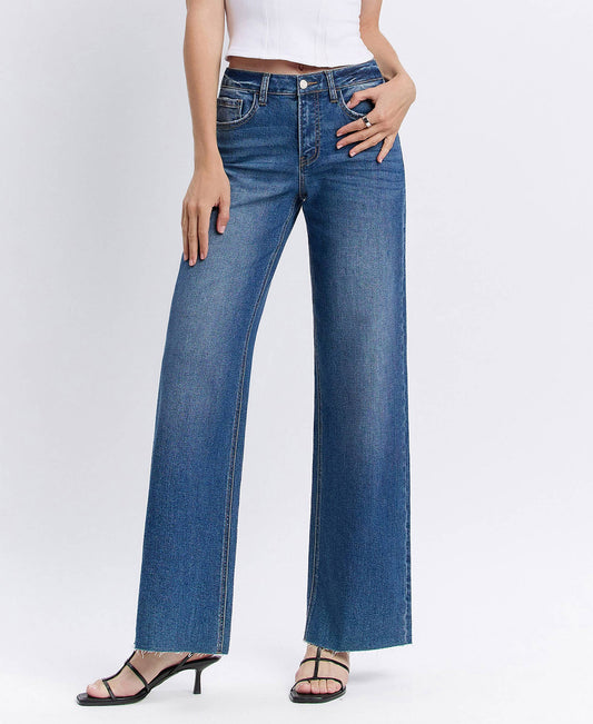 High-Rise Clean-Cut Raw Hem Wide Jeans