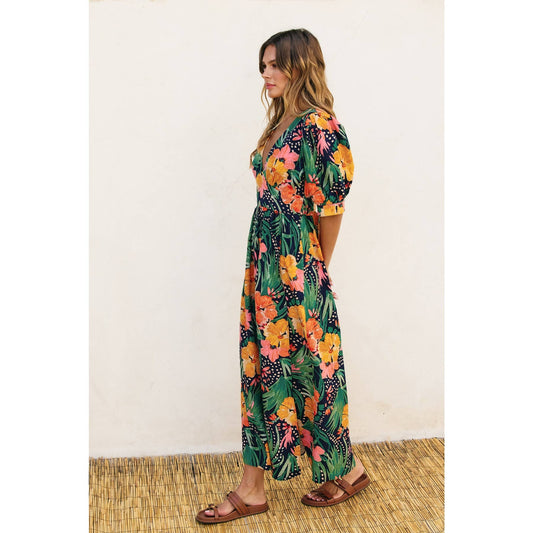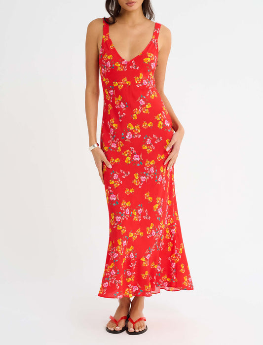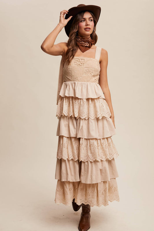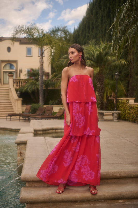Zahra Island Palmer Poplin Tiered Maxi Dress