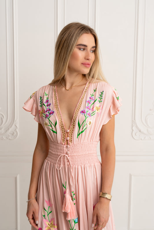Lucille Embroidered Chiffon Wrap Dress