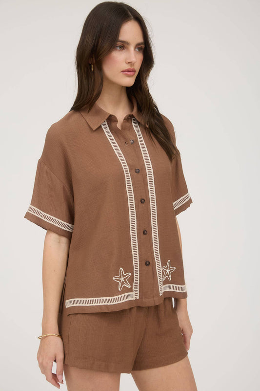 Starfish Embroidery Button Down Shirt