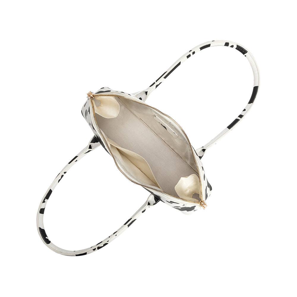 Our best-selling Dakota shoulder bag returns with a playful cow print! Featuring a curved top and sleek silhouette, this bag balances modern style with everyday functionality. Double handles provide versatile carrying options, and the compact design is surprisingly spacious—perfect for turning any outing into a statement moment.