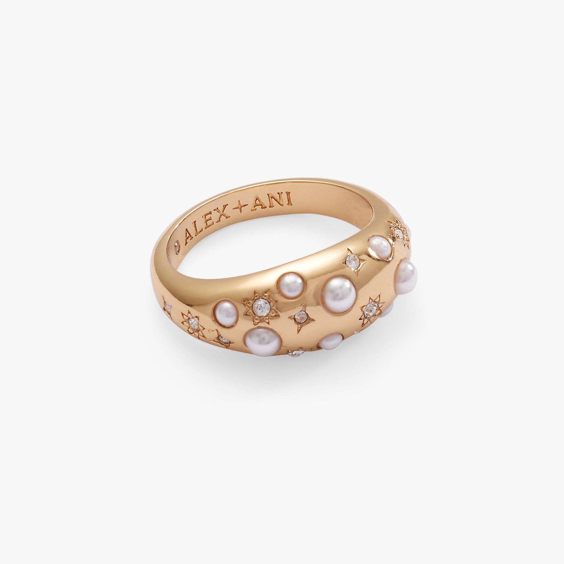 Add a luminous touch to any look with this Pearl and Crystal Ring. This size 7 ring features pearl and clear crystals and an etched starburst pattern. Wear it for an unmatched glow.