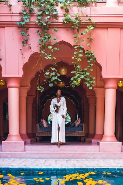 Pure Bliss Gown in a delicate cream color is a romantic masterpiece on its own. So much detail has gone into creating this stunning design including an elegant empire waist and fabric covered button up silhouette, elasticated back to fit well all body shapes and embroidered cool bell sleeves. This gorgeous button-up can be worn also open as a layering piece adding an incredible depth to any outfit. Pair this beauty with tan slides and fine jewelry for an afternoon soiree with friends.
