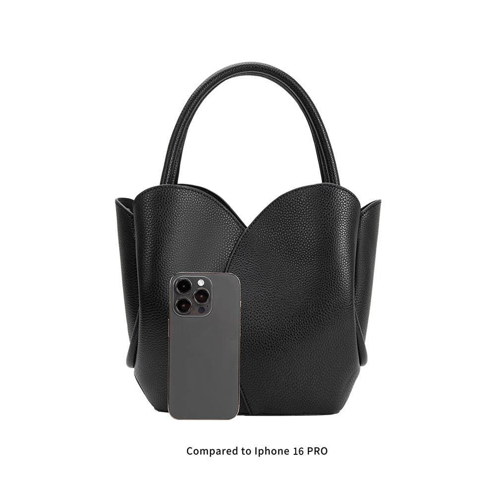 Inspired by the graceful silhouette of a blooming tulip, the Tulip Bag effortlessly blends charm with versatility. Crafted from recycled vegan leather with a refined pebble texture, this structured bag can be styled as a sophisticated top handle or worn crossbody for hands-free ease. Thoughtfully designed, it features silver-tone hardware, a snap hook closure, and protective nested feet. Inside, a removable zip pouch with its own detachable strap adds an extra layer of functionality—perfect for on-the-go essentials.