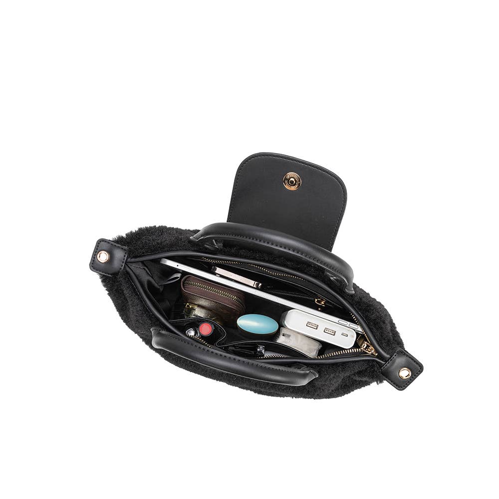 Chic meets cozy with the Winnie Tote, designed in soft sherpa with sleek recycled vegan leather accents. A versatile crossbody strap and top handle give you multiple ways to wear it, while the spacious interior keeps your essentials organized with zip and slot pockets. Finished with gold-tone hardware and an OEKO-TEX certified lining, itβs the perfect blend of style, function, and everyday ease.